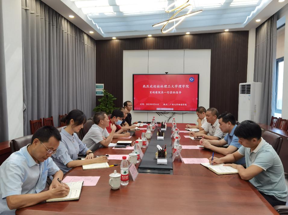 9月16日上午,桂林理工大学理学院肖剑荣院长一行到必赢官网考察调研。学院党委书记袁涛出席座谈会并致欢迎辞,学院常务副院长王祥高主持座谈会。