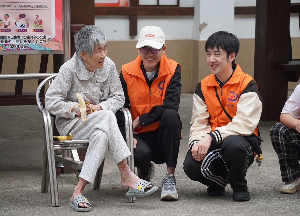 党员同志们来到老年公寓,陪老人聊家常,说往事,了解他们的生活所需,并送去水果、牛奶等慰问品。随后学生党员和老人们开展了筷子夹纸团、趣味套圈、手接乒乓球、红歌表演等趣味小游戏,院子里一片欢声笑语、其乐融融。