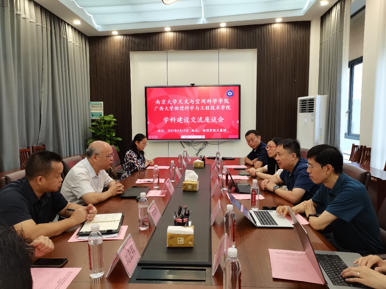8月15日,南京大学天文与空间科学学院党委书记顾秋生、院长李向东率党政领导班子一行6人到必赢官网调研学科建设、人才培养等工作。校党委常委、副校长、物理学院院长梁恩维参加调研活动,学院党委书记袁涛主持座谈会。