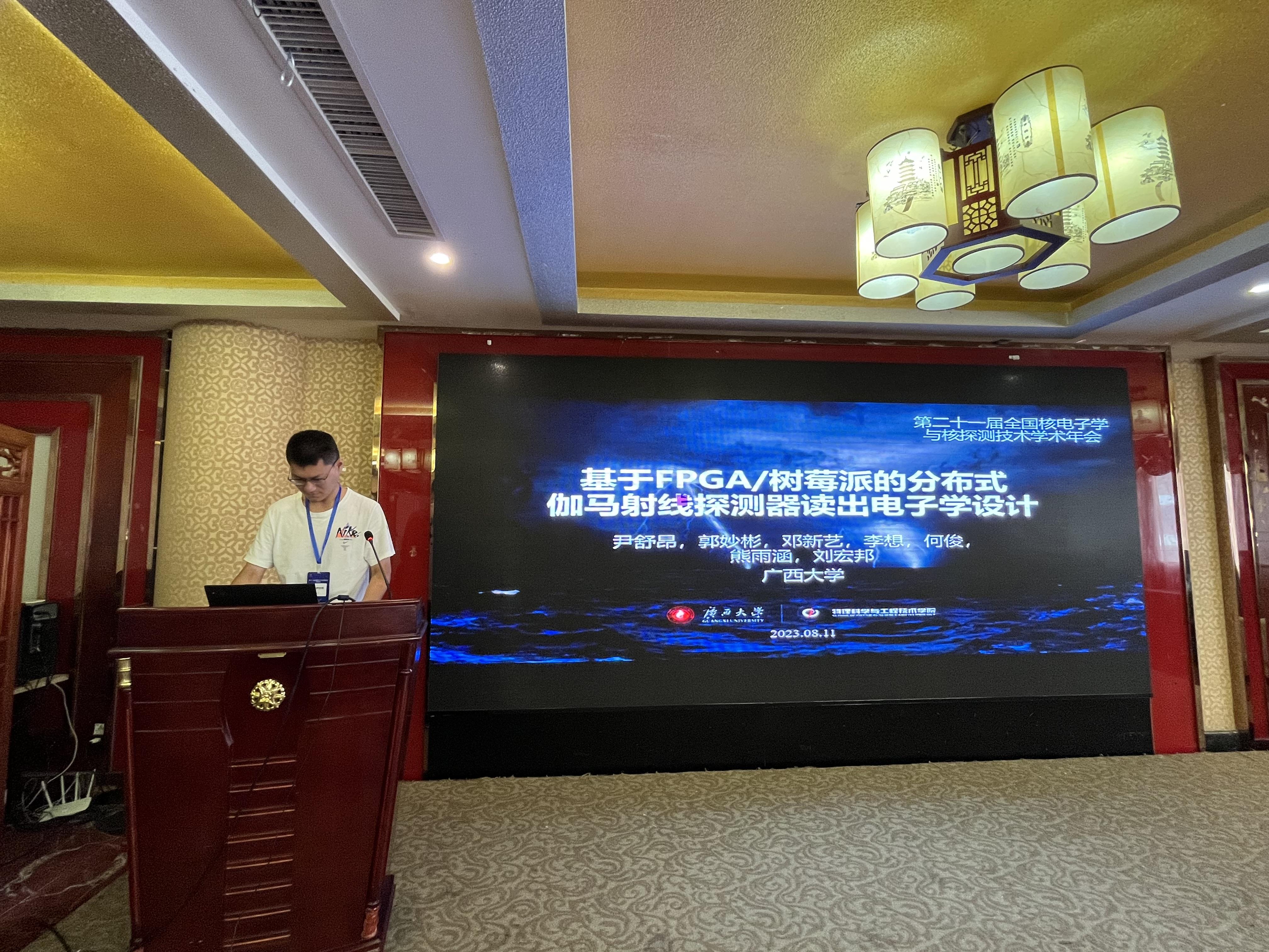 2023年8月9日至11日,第二十一届全国核电子学与核探测技术学术年会在湖北恩施召开。来自全国各地的近400名专家学者、科技工作者及研究生参加了会议,并对核电子学、核探测技术的相关研究领域进行了深入研讨和交流。由必赢官网2020级本科生李想、尹舒昂参加会议并就所开展的大学生创新训练计划项目《地面伽马射线探测器阵列研究项目》研究进展作分会口头报告,指导老师为学院刘宏邦教授。