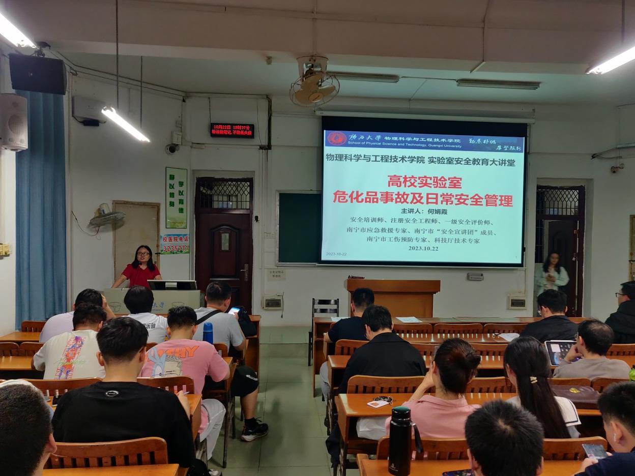 物理学院从这个学期开始,将实验室安全教育纳入到研究生实践教学环节,结合学校实验室安全知识考试和各研究团队组织开展的实验室安全专题培训,强化了师生的实验室安全意识,提高了实验室危险源的辨识和应对实验室安全事故的能力。