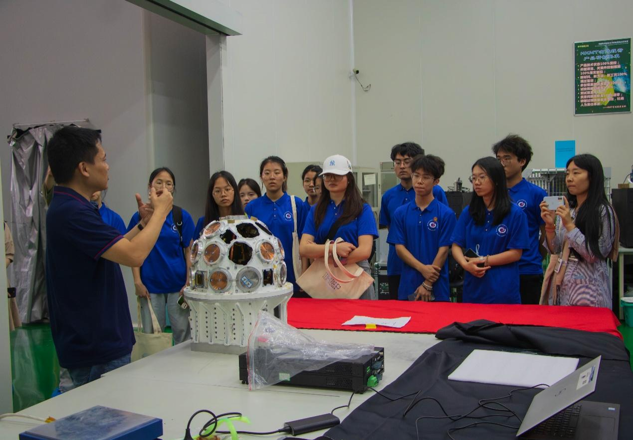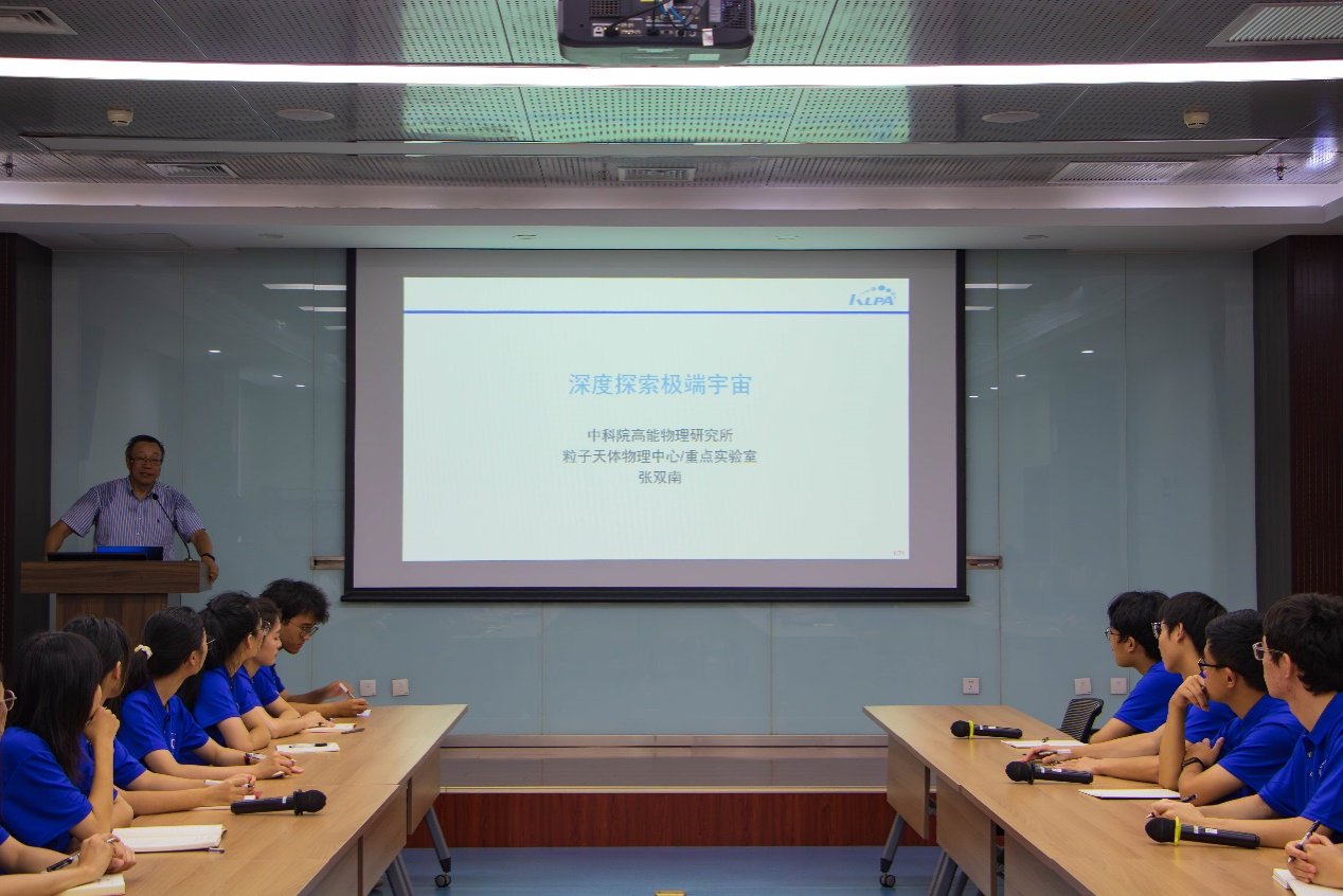 来到中国科学院高能物理研究所,由张双南院士为同学们开展关于深度探索极端宇宙的学术报告。在这场报告中,同学们领略到了科学家们如何揭开宇宙神秘的面纱,探索隐藏在极端条件下的宇宙奥秘。紧接着,物理学院副院长刘宏邦带领同学们走进高能物理实验室,向同学们讲解了这些精密仪器的探测原理。