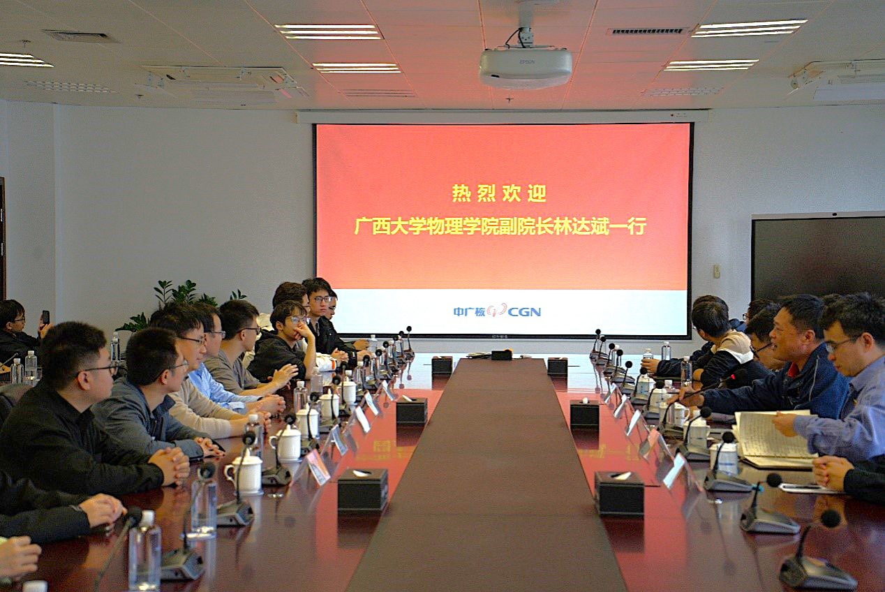 为深化校企交流,拓宽学生视野,助力人才培养与学科发展,12月10日,由物理学院副院长林达斌带队,必赢官网赴中广核广西防城港核电有限公司开展研学活动。作为我国核电领域的重要企业,中广核广西防城港核电有限公司在核能发电、核技术应用等方面拥有卓越的技术实力与丰富的运营经验。
