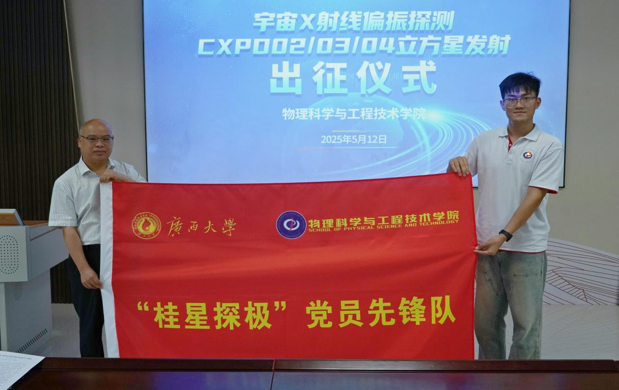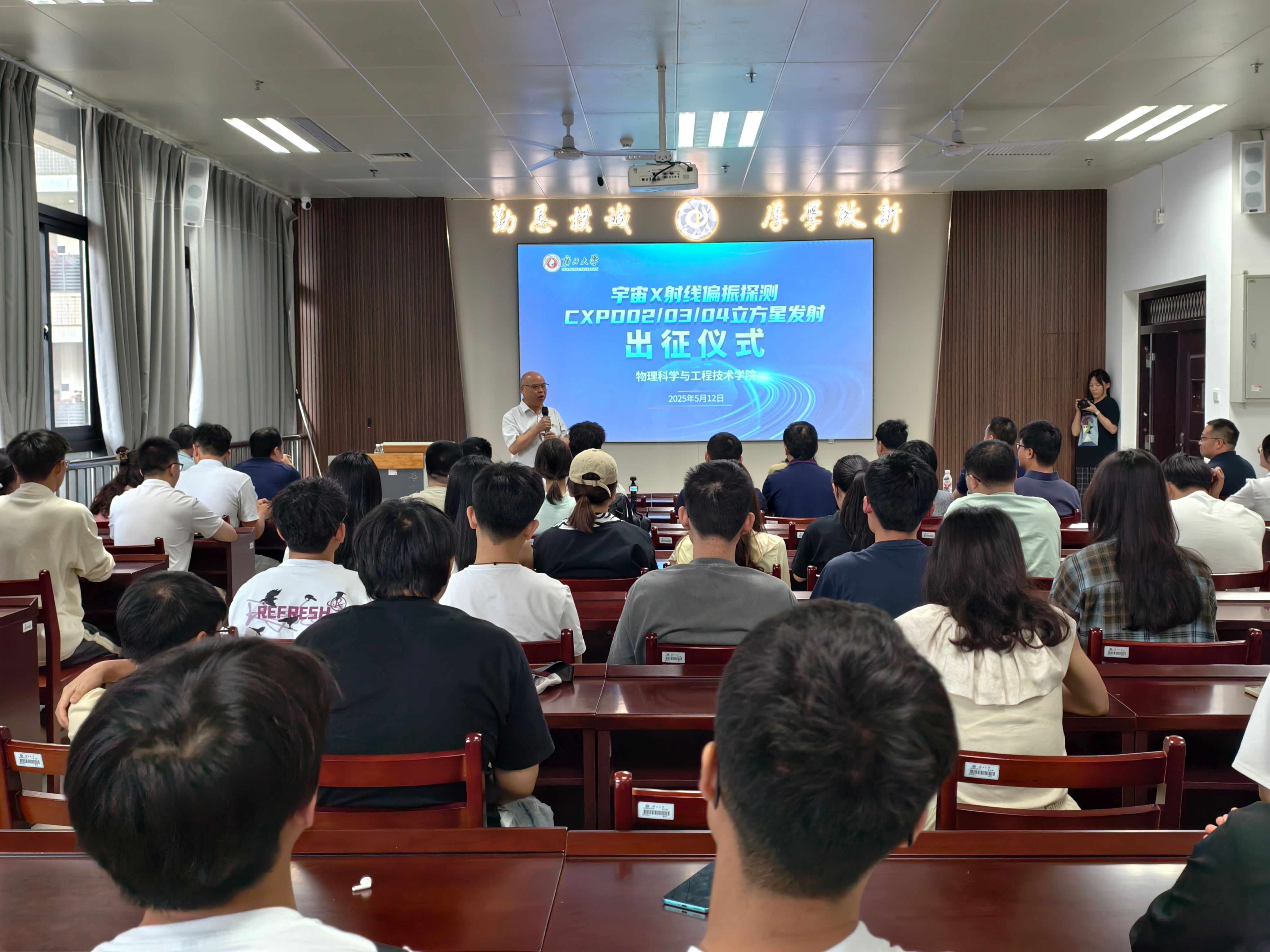 5月12日,必赢nn699net官网举行宇宙X射线偏振探测(CXPD)系列立方星发射出征仪式,为即将奔赴酒泉卫星发射中心见证发射任务的团队壮行。校党委常委、副校长梁恩维为出征团队授旗并讲话,必赢nn699net官网党委书记蒋津辉主持仪式。