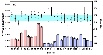 图1:表层样品中239+240Pu和137Cs的比活度及240Pu/239Pu原子比值