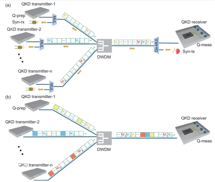 量子密钥分发(Quantum Key Distribution, QKD)是基于量子物理提出的一种具有信息理论上无条件安全的密钥交换技术,也是量子信息领域率先走向实用化的技术之一。随着理论和实验技术的发展,QKD的实验验证在高速率、远距离和星地一体广域网络等方面纷纷取得记录性突破。当前,QKD技术的实用化引起各界的广泛关注。为解决大规模的复杂的应用需求,QKD网络是不可或缺的环节。至今许多QKD网络实验演示相继被报道。量子接入网(Quantum Access Network, QAN)是QKD网络中的代表性架构,能够为多个用户访问量子基础设施提供最后一公里连接。然而,目前QAN的实现仍然需要额外的硬件来完成辅助任务,例如时间同步,增加了部署成本和设备复杂度,阻碍了QKD网络的广泛部署。