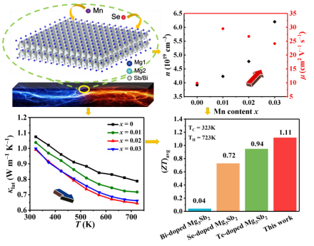 近日,必赢官网纳米能源研究中心与桂林电子科技大学热电材料与器件团队苗蕾教授课题组开展合作研究,在国际一流期刊ACS Applied Materials & Interfaces上发表了题为“Realizing a High ZT of 1.6 in N-Type Mg3Sb2-Based Zintl Compounds through Mn and Se Codoping”的研究论文。