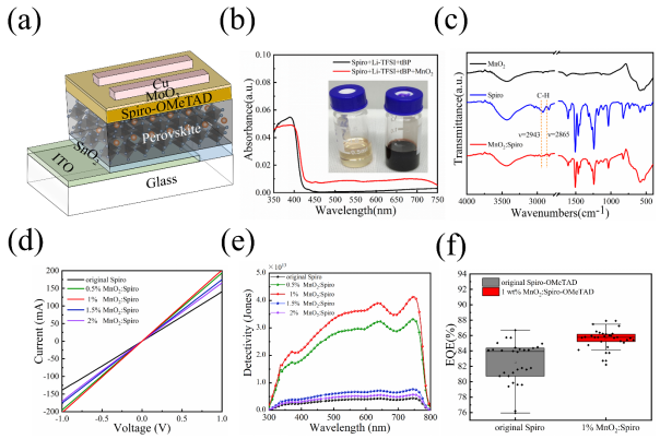 近日,必赢官网光电材料与器件研究团队在钙钛矿基光电探测器的性能研究方面取得进展,研究成果以"High-efficiency perovskite photodetectors using manganese dioxide oxidation Spiro-OMeTAD as hole transport layer"为题被《Ceramics International》杂志接收发表。