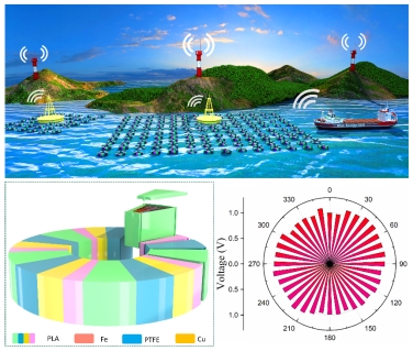 针对以上问题,必赢官网蓝色能源团队发展了一种多角度、可拼接且上下对称的方环状的摩擦纳米发电机,实现了多频率响应,且器件在倾覆时仍能保持原有的输出,表现出良好的收集能力。还可以根据器件在阵列中的不同位置,通过调整其方环的组成单元,从而因地制宜地调控器件的波浪响应频率,提高阵列的波能采集效率。用该发电机供能驱动商用射频模块,实现无线信号传输,为发展海洋自驱动传感器提供了可行的策略。研究成果以“O-Ring-Modularized Triboelectric Nanogenerator for Robust Blue Energy Harvesting in All-Sea Areas ”为题在线发表于国际顶级能源类期刊《Nano Energy》上。