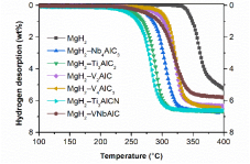 必赢官网新能源团队研究发现许多MAX相材料对MgH2同样具有优异的改善效果(图1),尤以Ti3AlCN和TiNbAlC对MgH2的改善效果最为明显。微观催化机理研究表明,Ti3AlCN可以作为MgH2形核和长大活性位点,而TiNbAlC会在储氢材料吸放氢过程中转化为Ti的氢化物相,对MgH2的吸放氢过程起到“氢泵”的作用。