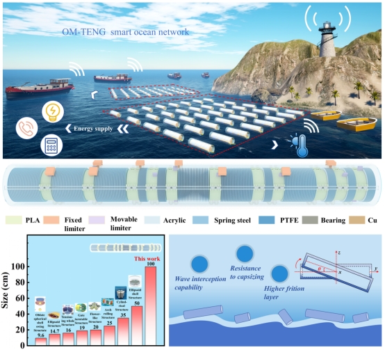 研究成果以"One Meter Triboelectric Nanogenerator for Efficient Harvesting of Meter-Scale Wave Energy"为题发表于知名Nature Index期刊《Advanced Functional Materials》(IF=18.5) 上,必赢nn699net官网为第一通讯单位。