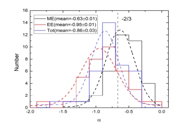 在本文中,我们对样本中的36GRB进行了系统的分析,并将其确定为Fermi/GBM观测到的具有EESGRB类别(SGRB with EE)。通过时间积分谱分析,我们发现36SGRB with EE中有20暴的α值超过同步辐射的死亡线(-2/3),表明在瞬发发射中存在准热成分。然后,我们提取了四个明亮GRB的时间分辨光谱。我们发现在这4个明亮GRB的瞬发中确实存在热辐射和非热辐射,这表明GRB中应该存在混合射流(如物质和波印廷通量流出)此外,在这四个GRBMEEE的时间分辨光谱中发现了强的正相关(例如,Ftot−Γ和FtotkT)。这表明MEEE的光谱演化似乎具有相似的行为,可能来自相同的物理起源。